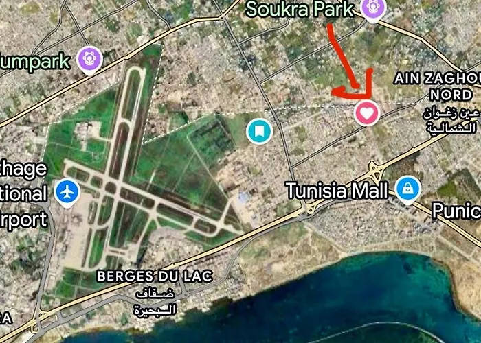 Situado a una distancia de 4 km del Anfiteatro de Cartago, El Wahat Tunis Appartment شقة مفروشة حي الواحات تونس es un excelente punto de partida para enriquecer tu cultura. El apartamento está situado a 6 km de las Ruinas de Cartago y el aeropuerto Internacional de Tunez-Cartago, a 10 minutos en coche.